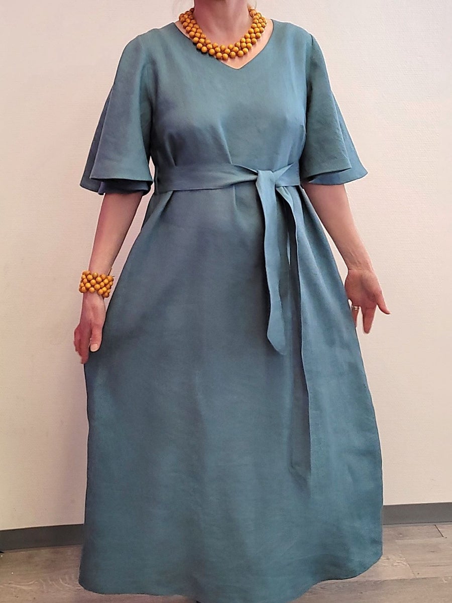 Du behöver inte räkna med eller fundera på linneets krympning, eftersom tyget har tvättats före sömnad.
