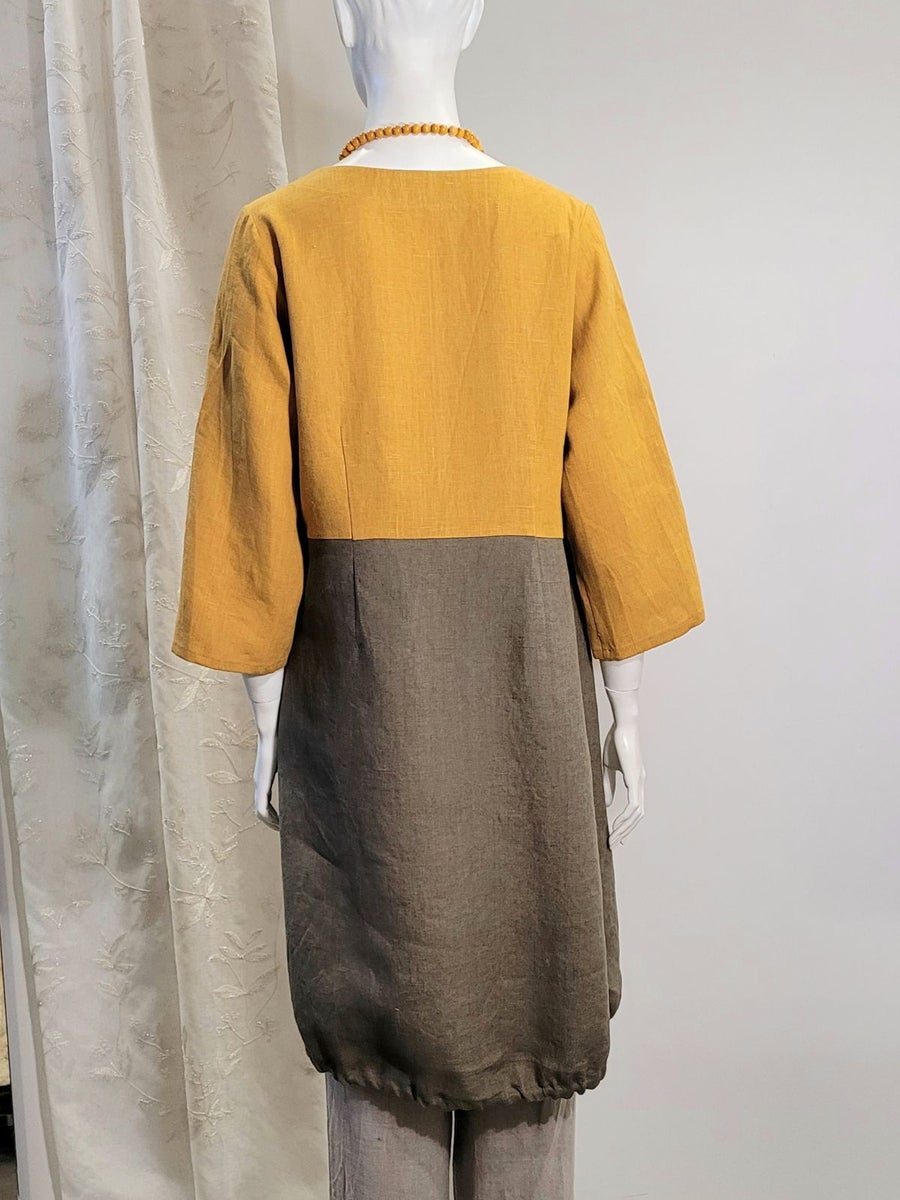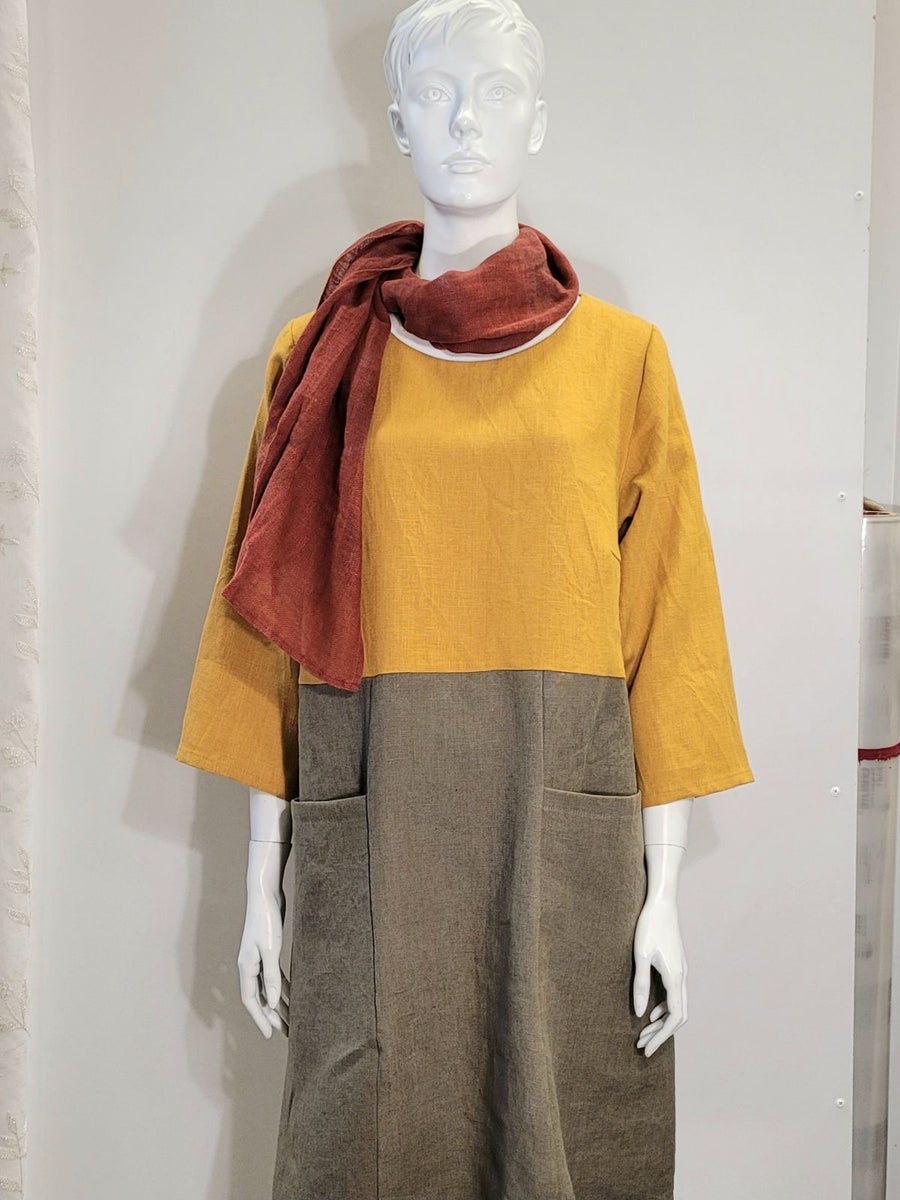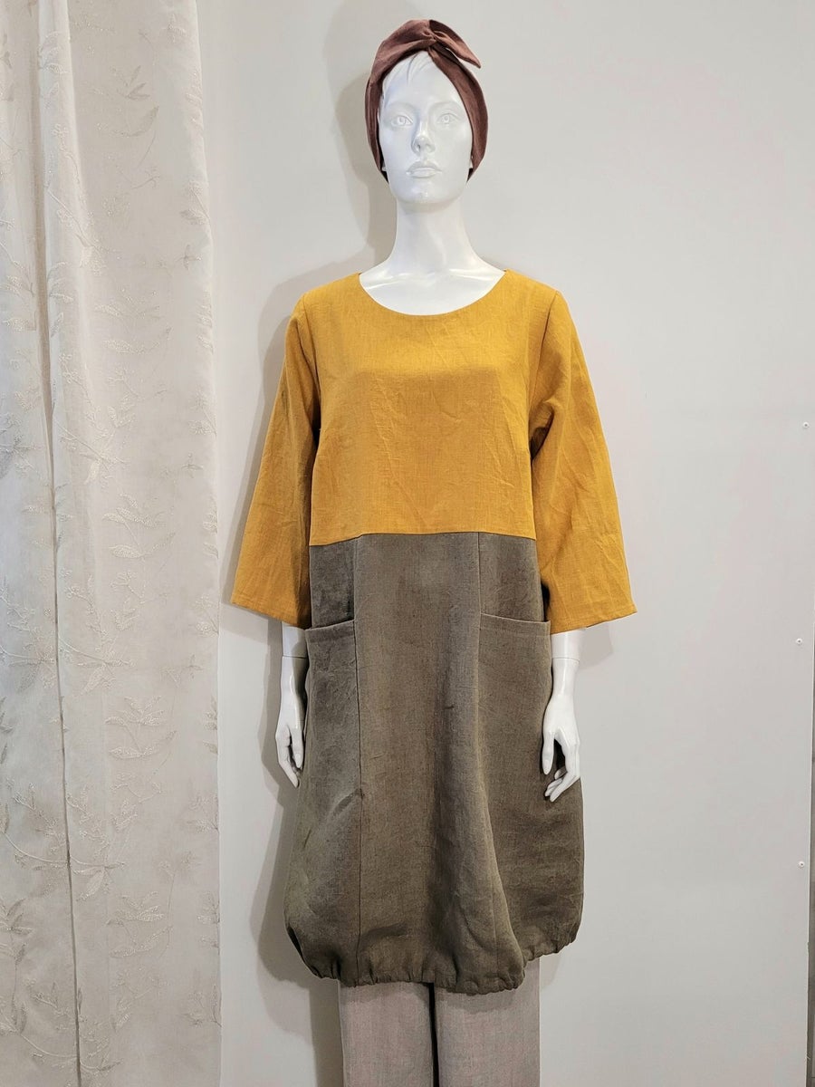 Aina linneklänning – Gul-khaki, storlekar XS och S